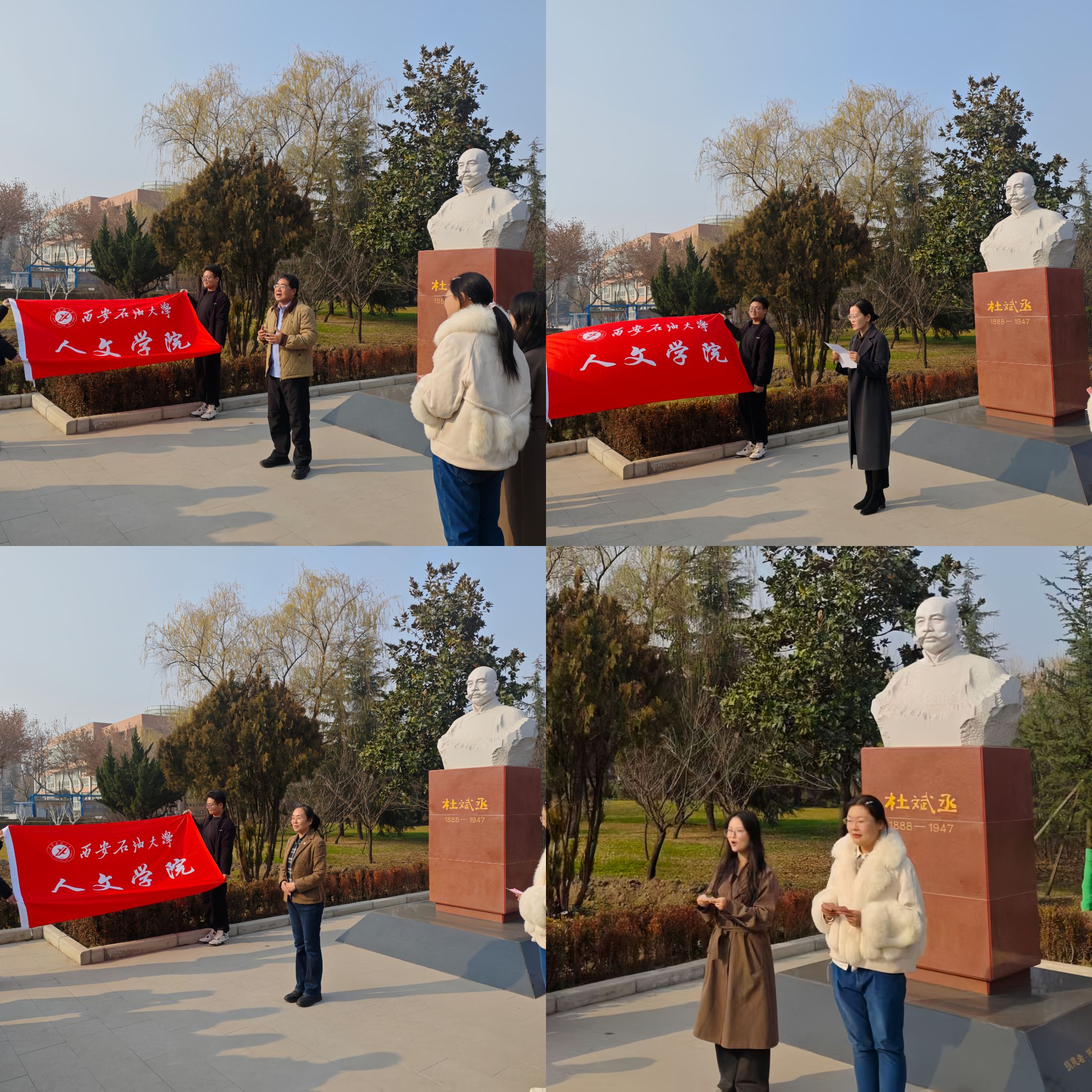 在杜斌丞烈士雕像前举行纪念杜斌丞烈士主题诗歌诵读活动。2024级汉语言文学专业全体同学参加,牟徐徐、杨雨婷两位同学主持。